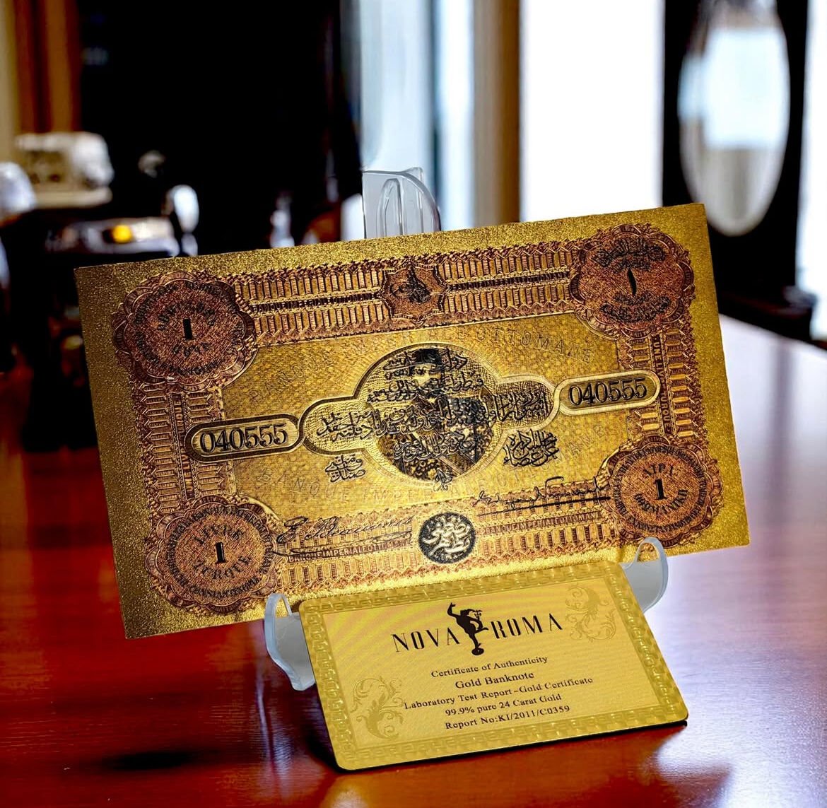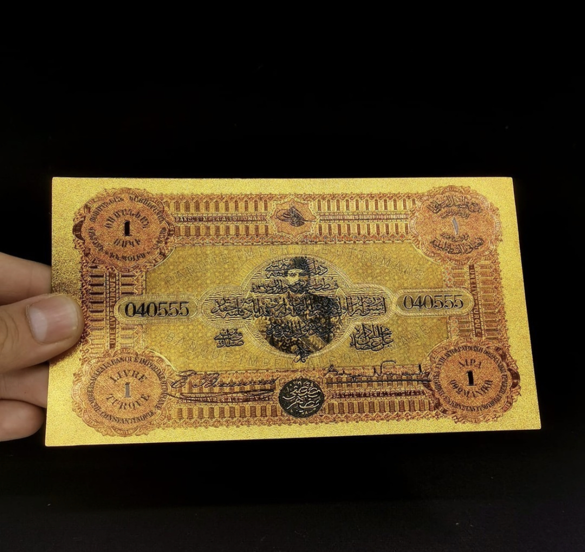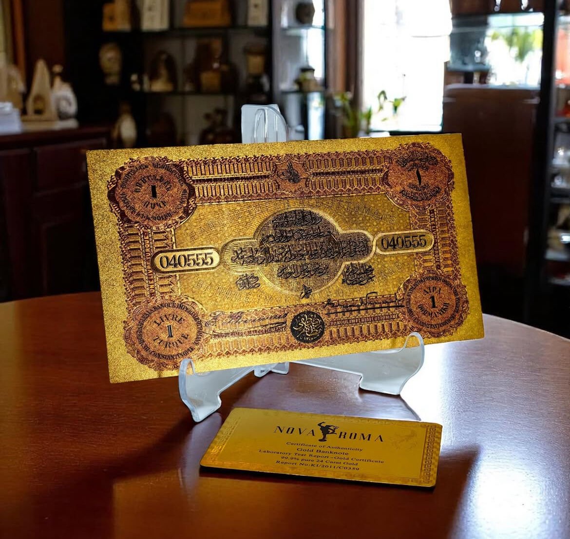 24 Ayar Altın Kaplama Osmanlı Konstantinapolis 1 Livre Hatıra Sertifikalı Banknot