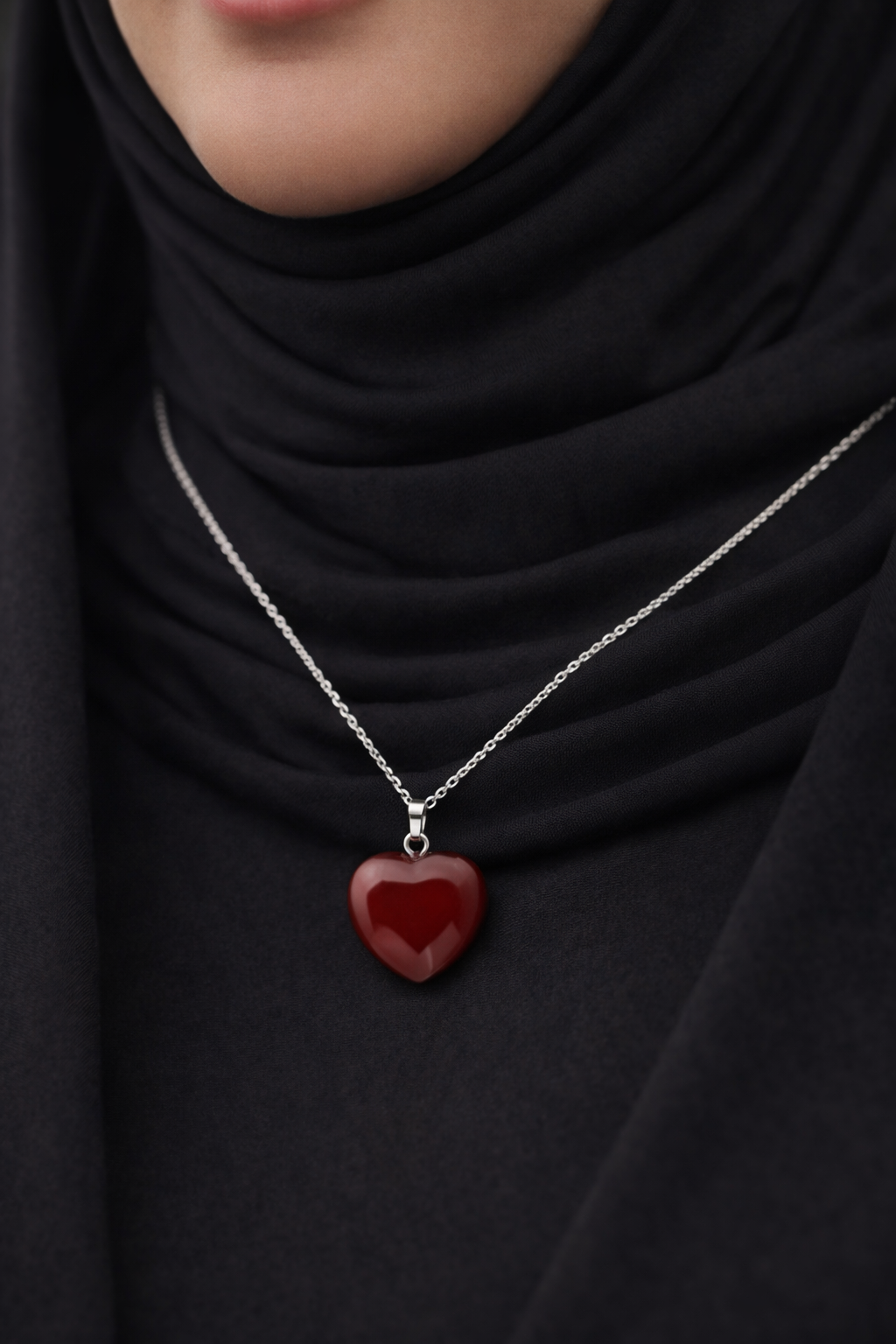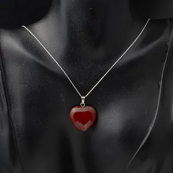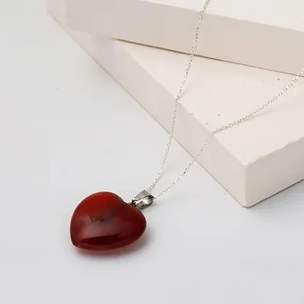 Akik Taşlı Gümüş Kalp Kolye