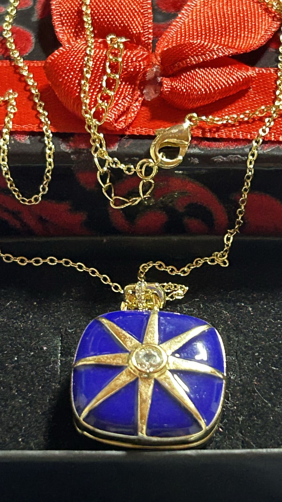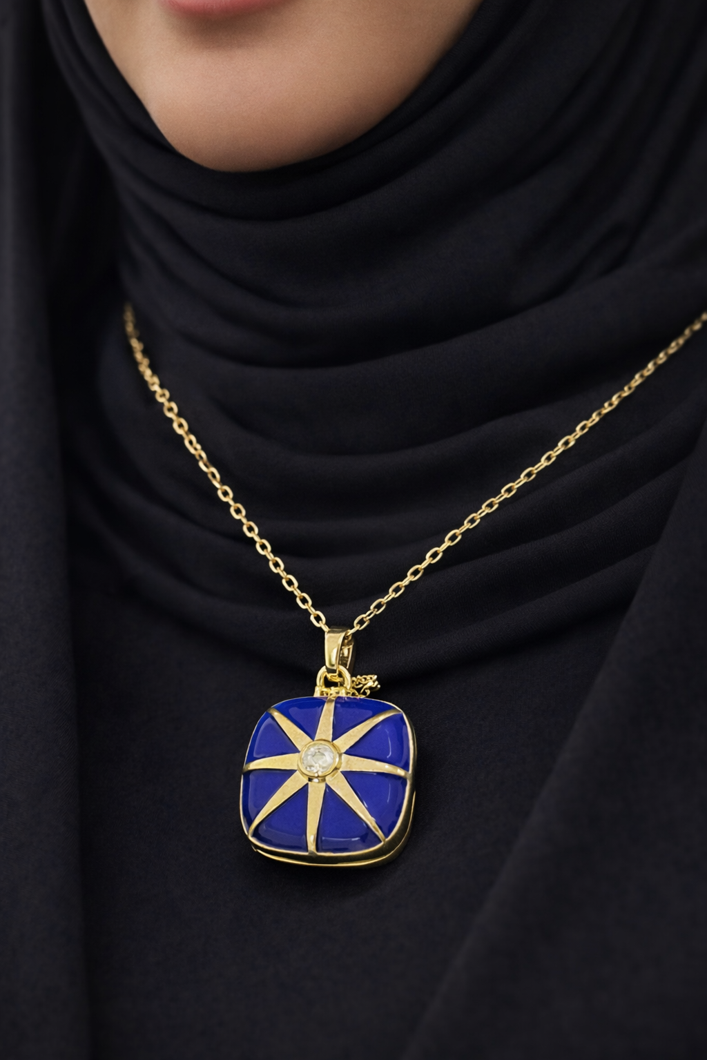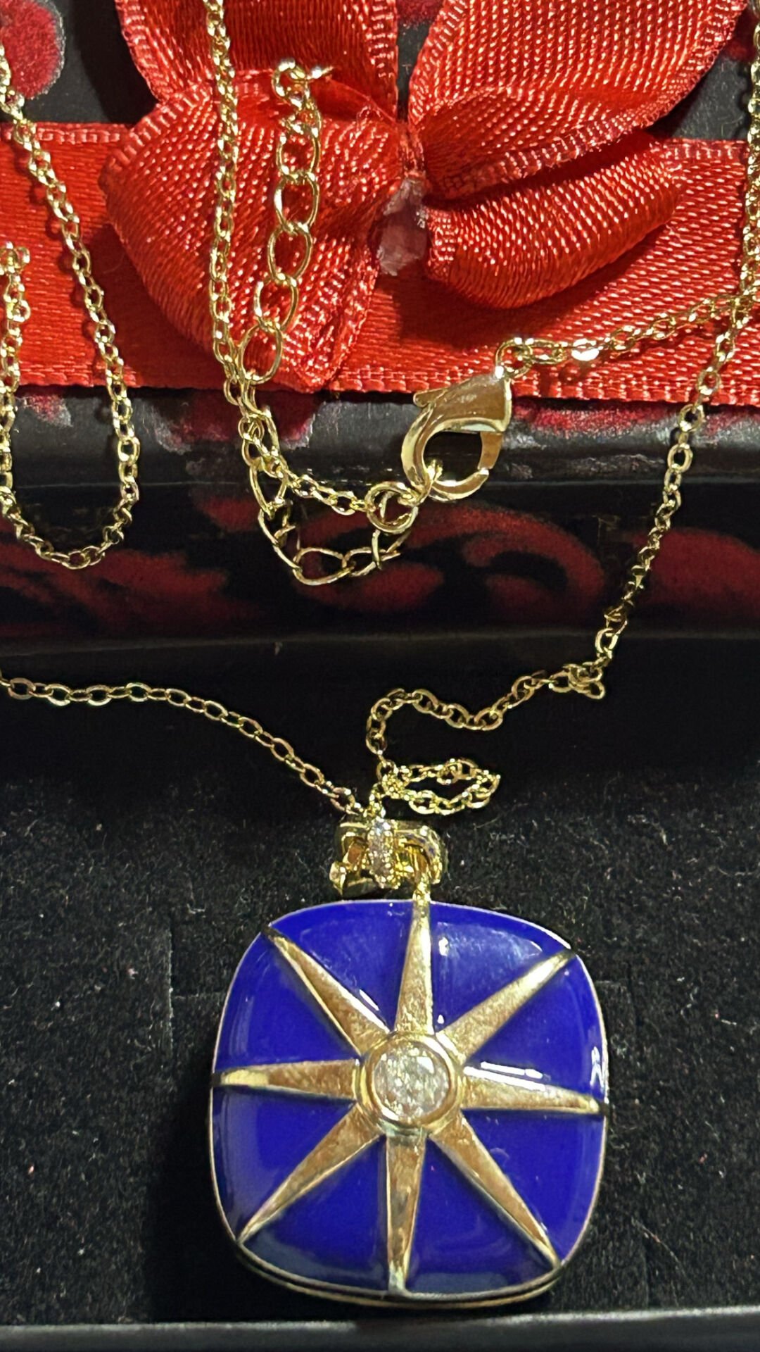 Altın Kaplama Mavi Mine İşçilikli Kolye