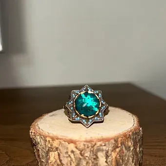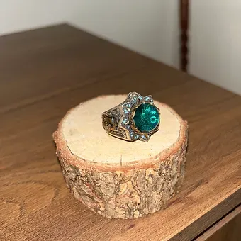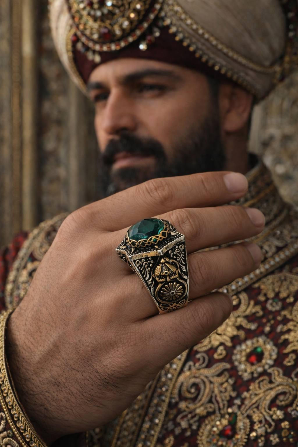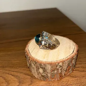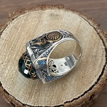 Yarı değerli taşlarla süslenmiş Selçuklu Sultanlığı Motifli Gümüş Yüzük