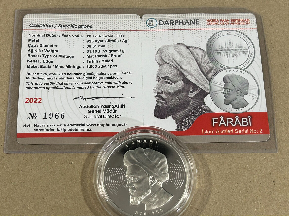 2022 Yılı Farabi “İslam Alimleri Serisi No:2“ Darphane Gümüş Hatıra Parası
