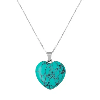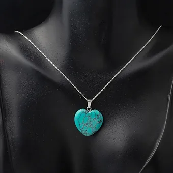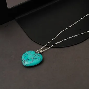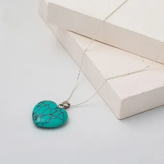 Firuze Taşlı Gümüş Kalp Kolye