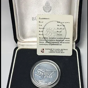 İstanbul’un Fethinin 555.Yılı Gümüş Darphane Hatıra Parası Sertifikalı ve Özel Kutulu