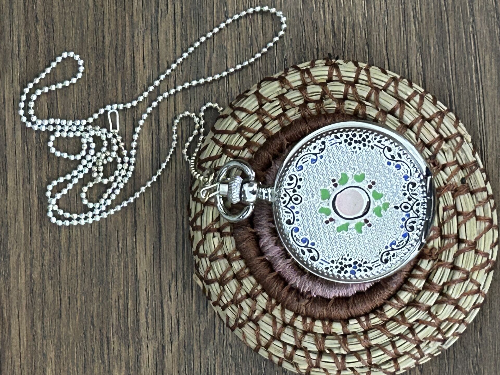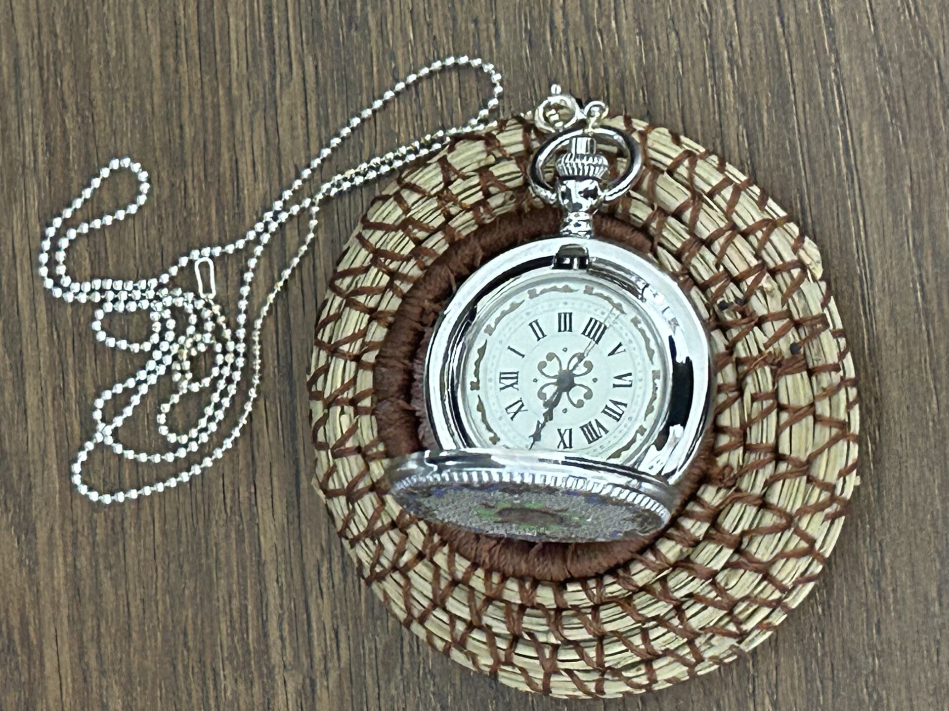 Mineli Gümüş Kaplama Köstek Zincirli Cep Saati