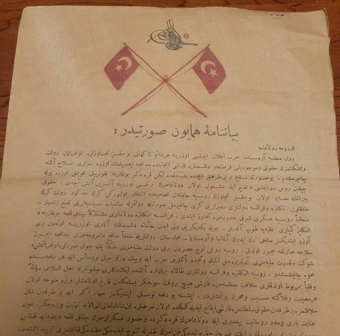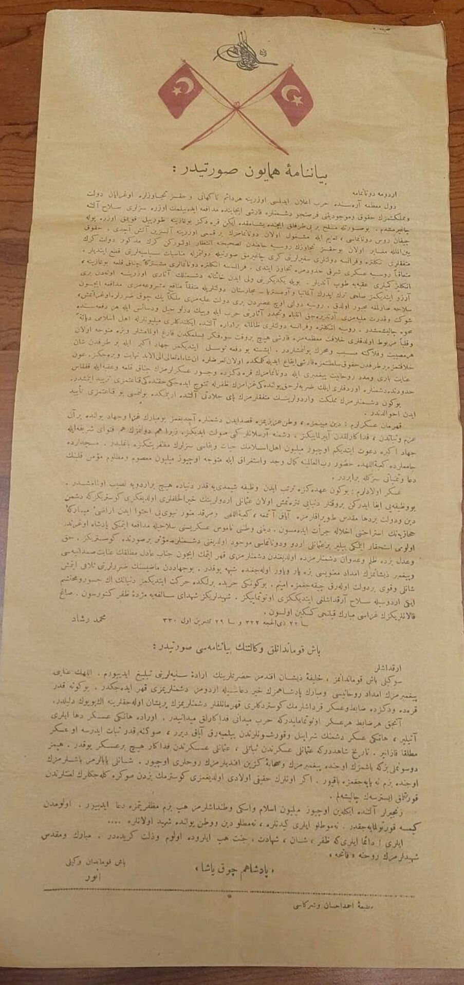 OSMANLI DEVLETİNİN SAVAŞ İLANI. 23 KASIM 1914 TARİHLİ 1. DÜNYA SAVAŞI SEFERBERLİK İLANI VE CİHAD-I EKBER FETVASI.