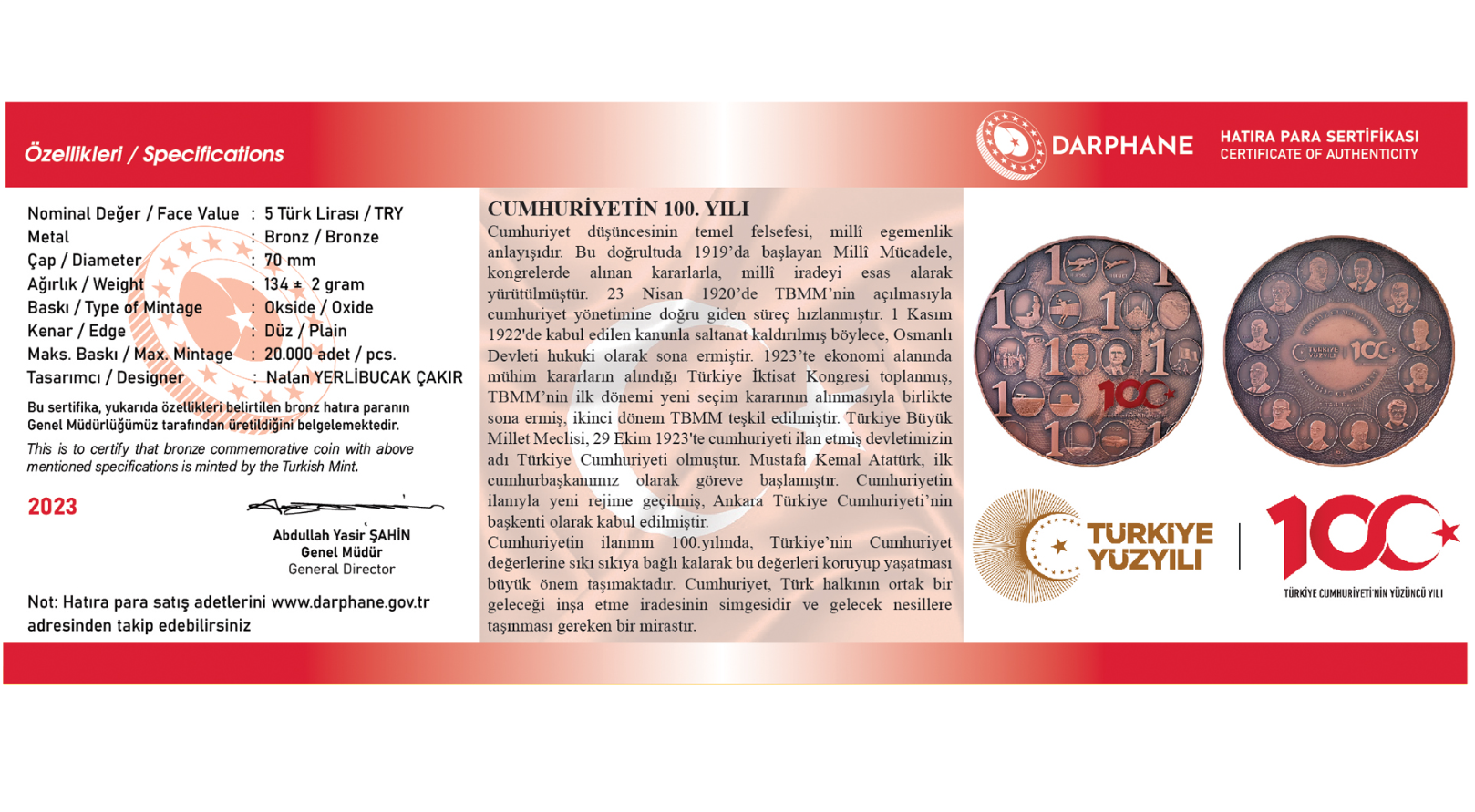 Türkiye Cumhuriyeti'nin 100.Yılı Bronz Hatıra Parası