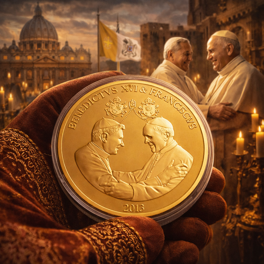 Vatikan 2013 Yılı Papa 16.Benediktus Ve Franciscus Altın Kaplama Hatıra Madalyonu
